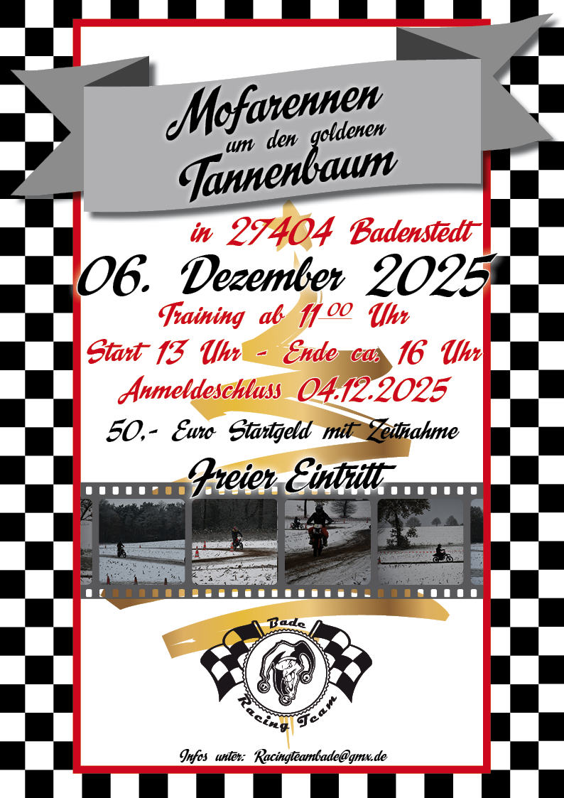 Das Mofarennen 2025 findet in 52 Tagen, am 06.12 in Badenstedt statt.